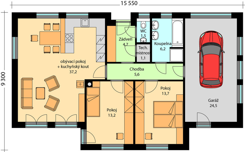 K domu lze přistavět garáž, projekt Vám zpracujeme i ve variantě s garáží.