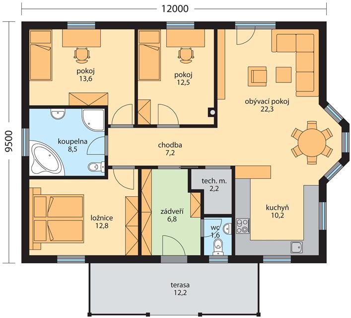 Rodinný dům Vráťa je přízemní dům klasické dispozice s krytým vstupem-terasou, určený pro jednu rodinu. Počet místností 4+kk (obývací pokoj propojený s jídelním a kuchyňským koutem, ložnice a dva pokoje). Z obývacího pokoje je přístup do zahrady. Typově je dům vhodný do rovinného i svažitého terénu. Projekt je nabízen i v nízkoenergetickém standardu provedení a i ve variantě dřevostavba (viz. dům VRÁŤA - D.)