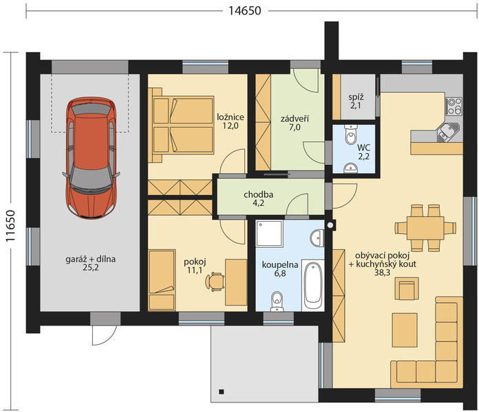 Rodinný dům Amálka je přízemní dům moderního vzhledu s garáží, s možností rozšíření o podkroví. Přízemní varianta se třemi místnostmi a kuchyňským koutem je určena pro bydlení jedné rodiny. Obývací pokoj s kuchyňskou linkou je opatřen krbovými kamny a poskytuje dostatek prostoru pro celou rodinu. Z obývacího pokoje a jednoho z pokojů je přístup na venkovní terasu, která je částečně zastřešena. Koupelna je zařízena vanou, sprchovým koutem, umyvadlem a toaletou. Vedle kuchyňského koutu se nachází spíž, kterou lze využít i jako komoru. Prostorné zádveří s vestavěnými skříněmi nabízí dostatek úložného prostoru. Dům možno zrealizovat i bez garáže-viz. RD Monika.