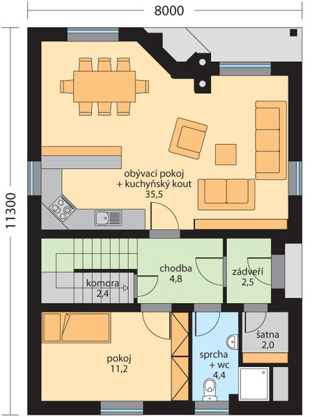 K domu lze přistavět garáž, projekt Vám zpracujeme i ve variantě s garáží.