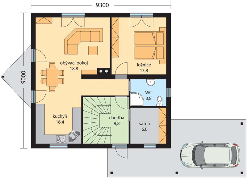 K domu lze přistavět garáž, projekt Vám zpracujeme i ve variantě s garáží.