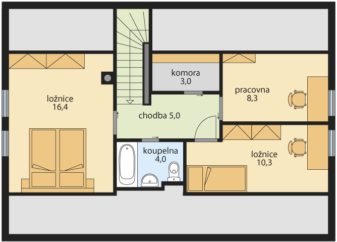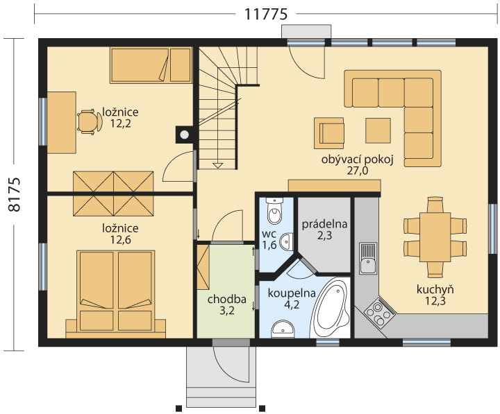 Rodinný dům Sven je klasický dům s obytným podkrovím se sedlovou střechou vhodný do městské i vesnické zástavby.Dispozice je navržena pro 5-6 člennou rodinu. Dům lze stavět i etapově, kdy se v přízemí vybuduje jedna bytová jednotka s obývacím pokojem kuchyní,dvěma ložnicemi, koupelnou a WC a další dvě ložnice s pracovnou, koupelnou a komorou se můžou dobudovat v podkroví. Fasáda je řešena kombinací omítky a obkladových cihliček, je možno ji řešit dle přání investora pouze šlechtěnou omítkou. Dům nabízíme i ve variantě dřevostavba-Rodinný dům Sven-D.