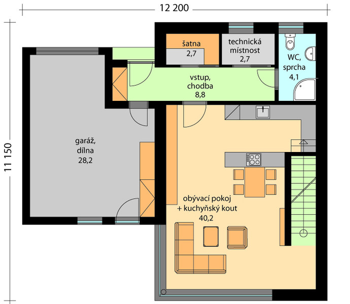 Rodinný dům Saskie je dvoupodlažní dům s garáží, určený především do městské zástavby, který lze zrealizovat i jako dvojdomek, nebo řadový dům. Jednoduchá dispozice umožní pohodlné bydlení jedné rodině, kde v 1.NP se nachází prostorný obývací pokoj s kuchyňským koutem a schodištěm vedoucím do patra. Francouzská okna v obývacím pokoji umožňují nejen propojení interiéru s exteriérem, ale hlavně dostatečné osvětlení. V 2.NP je ložnice, pokoj dětí, který lze rozdělit na dva menší pokoje. Z pokoje dětí se vstupuje na prostornou terasu situovanou nad garáží domu. Projekt nabízíme i ve variantě bez garáže - SASKIE.