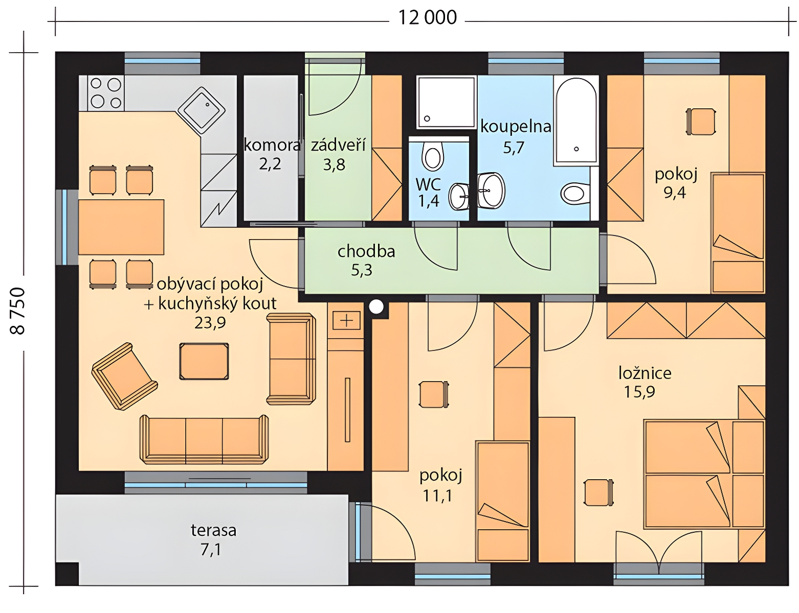 K domu lze přistavět garáž, projekt Vám zpracujeme i ve variantě s garáží.