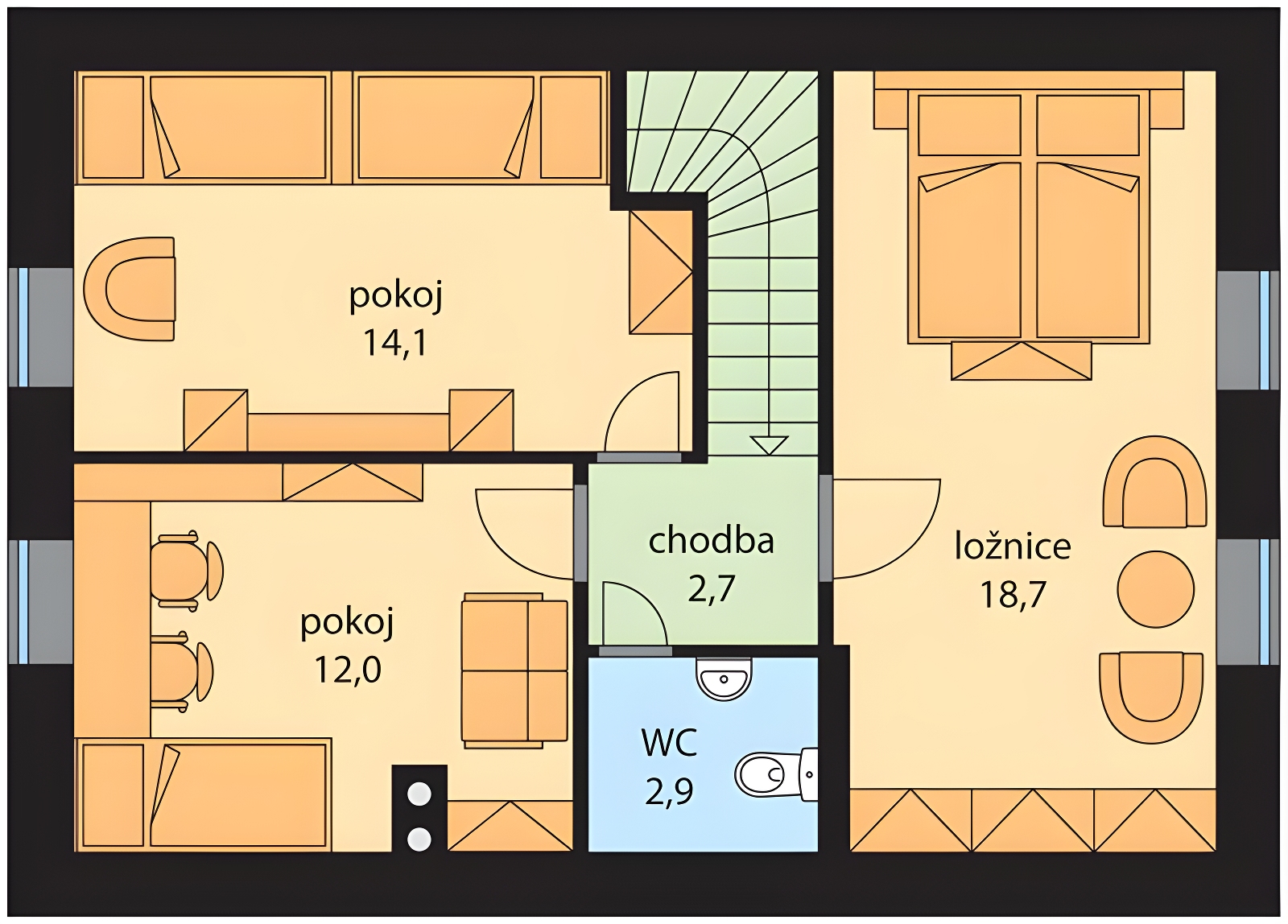 Rodinný dům Donald je s plně využitým podkrovím, určený pro bydlení jedné rodiny. Vstup do domu je z krytého závětří na východní straně. Půdorys je obdélnikového tvaru s dominantním prostorem obývacího pokoje. Součástí obývacího pokoje je kuchyňský kout s jídelním prostorem. Obytné místnosti v podkroví (dva pokoje a ložnice) splňují hygienická kritéria pro užívání jedné rodiny. Fasádu, která je ve štítech obložena dřevěnými palubkami, může tvořit jen šlechtěná omítka. Dům je typově vhodný do rovinného i svažitého terénu.