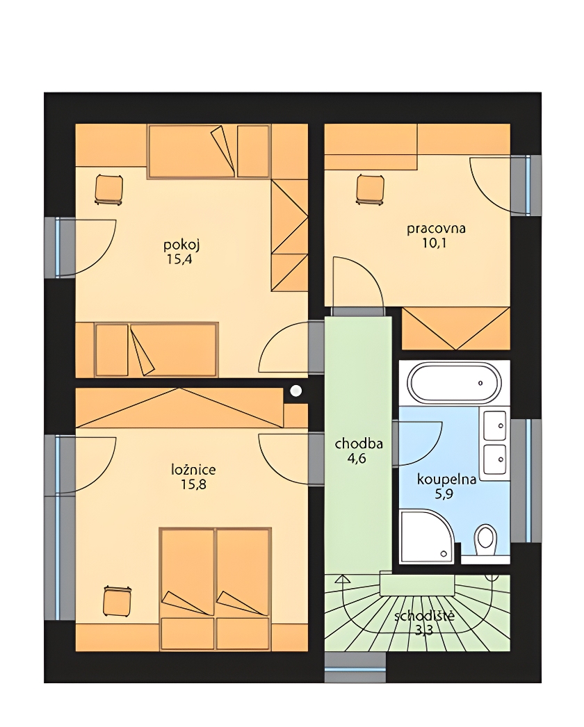 Dvoupodlažní rodinný dům DOROTKA moderního vzhledu s plochou střechou nabízí pohodlné bydlení jedné rodině. Dominantou přízemí je obývací pokoj s krbovými kamny propojený s jídelním koutem. Kuchyň je navržena odděleně. Z obývacího pokoje a jídelního koutu je možnost vstupu na terasu. Technická místnost umožní dovybavit dům technologiemi pro nízkoenergetický a pasivní standard. V 2. NP se nachází ložnice, pokoj, pracovna a koupelna. Malý pokoj - pracovnu lze využít jako pokoj pro hosty nebo víceúčelovou místnost. Dům má moderní vzhled, přesto se hodí do prakticky jakékoliv zástavby