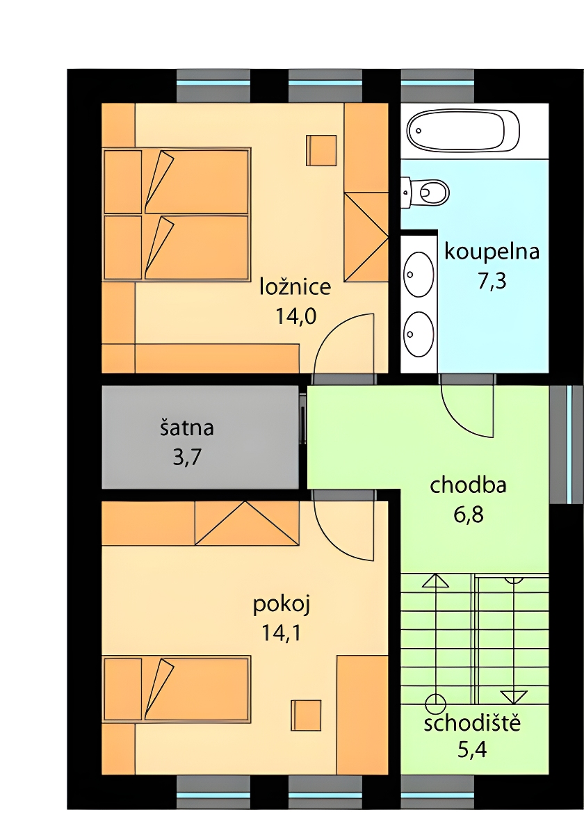 Rodinný dům ELVIS představuje menší přízemní rodinný dům s obytným podkrovím tradičního vzhledu, zastřešeného sedlovou střechou, jehož dispozice umožní bydlení jedné rodině. Ze zádveří je vstup do chodby a obývacího pokoje s jídelním a kuchyňským koutem. Součástí kuchyňského koutu je i spíž. Vstup na zahradu je prosklenými dvoukřídlými dveřmi v jídelním koutě. Využitý je i prostor pod schody, kde se nachází malá komora. Dispozice podkroví nabízí dvě ložnice, koupelnu a šatnu. Fasáda objektu je řešena obkladovými cihličkami, může být řešena jen štukovou omítkou.