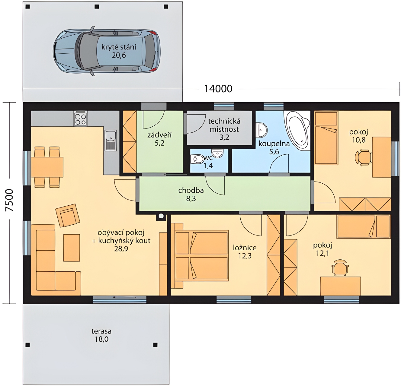 Rodinný dům IVICA představuje přízemní rodinný dům tradičního vzhledu, zastřešeného sedlovou střechou. Dům na dispozici 4+kk nabízí bydlení jedné rodině (obývací pokoj s kuchyňským koutem, ložnice a dva pokoje). Přes nevelké celkové rozměry nabízí dispozice kromě koupelny a WC i technickou místnost. Nabízíme i v provedení dřevostavba - viz. rodinný dům IVICA - D.