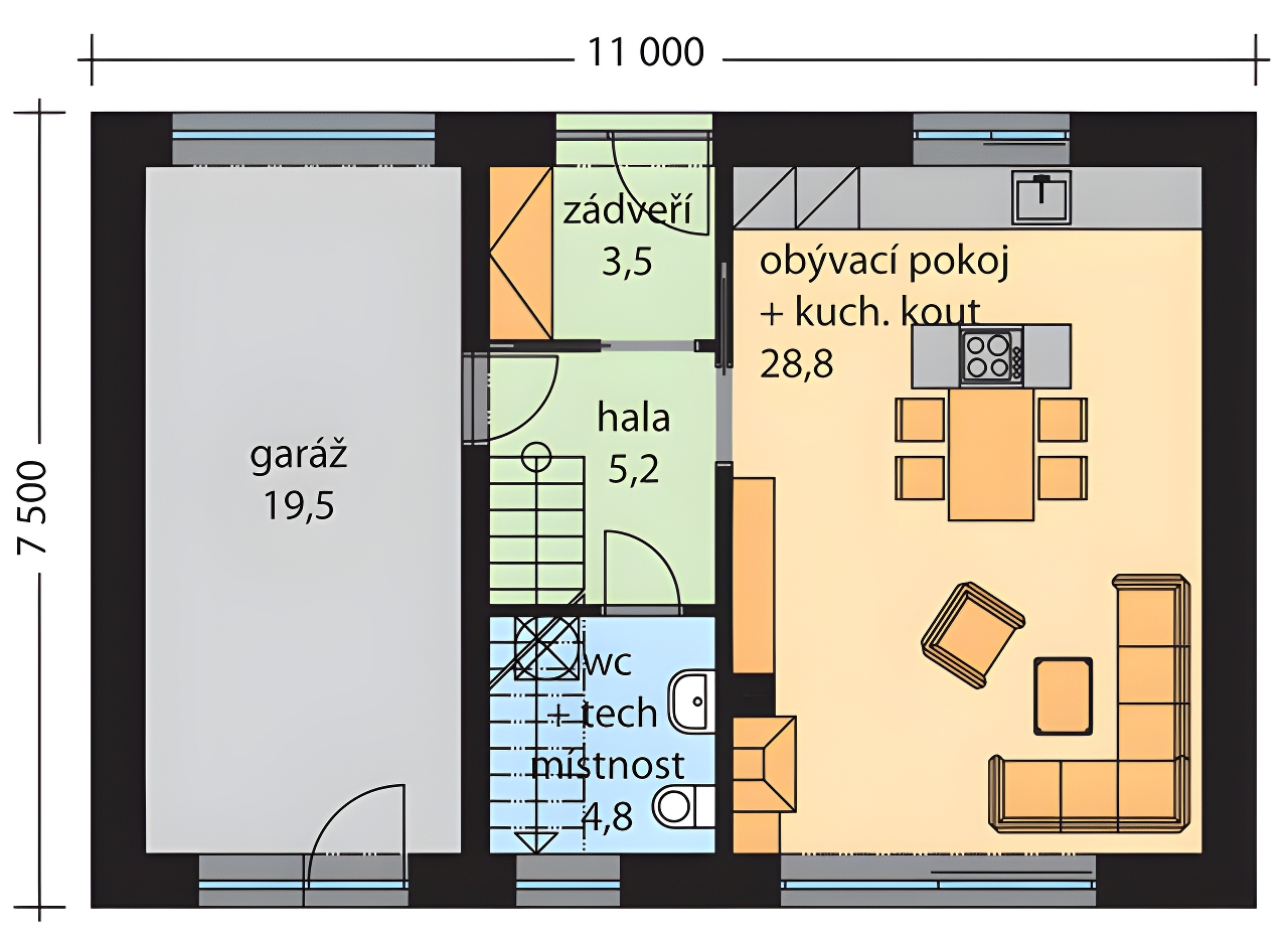 Rodinný dům LARA je dvoupodlažní moderní rodinný dům, vhodný i k realizaci dvojdomku, nebo po menší úpravě i do řadové zástavby. Jednoduchá dispozice umožní pohodlné bydlení jedné rodině. Dům je rozdělen na obytnou část v 1.NP a klidovou část-ložnice a dva pokoje v 2.NP. Terasa, na kterou se vstupuje z obývacího pokoje, je částečně zastřešena. Fasáda je řešena kombinaci omítky a kamenného obkladu.
