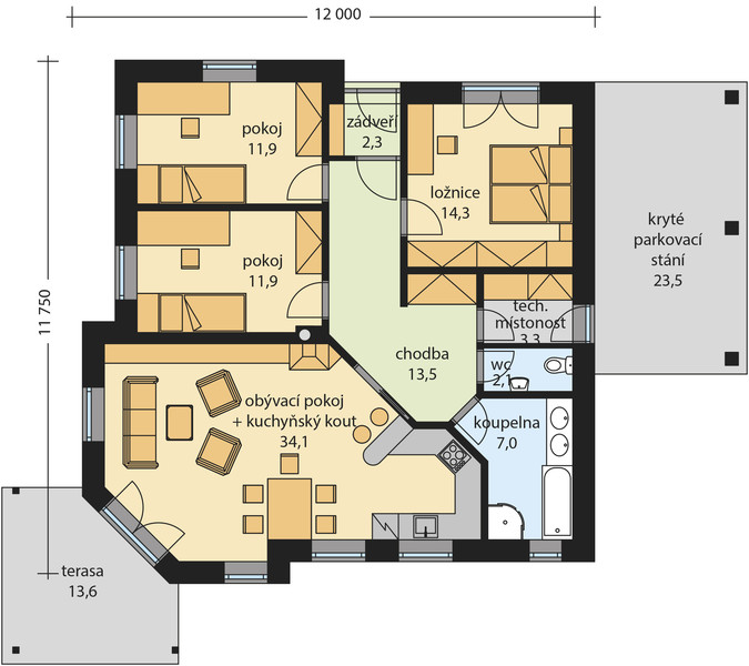 K domu lze přistavět garáž, projekt Vám zpracujeme i ve variantě s garáží.