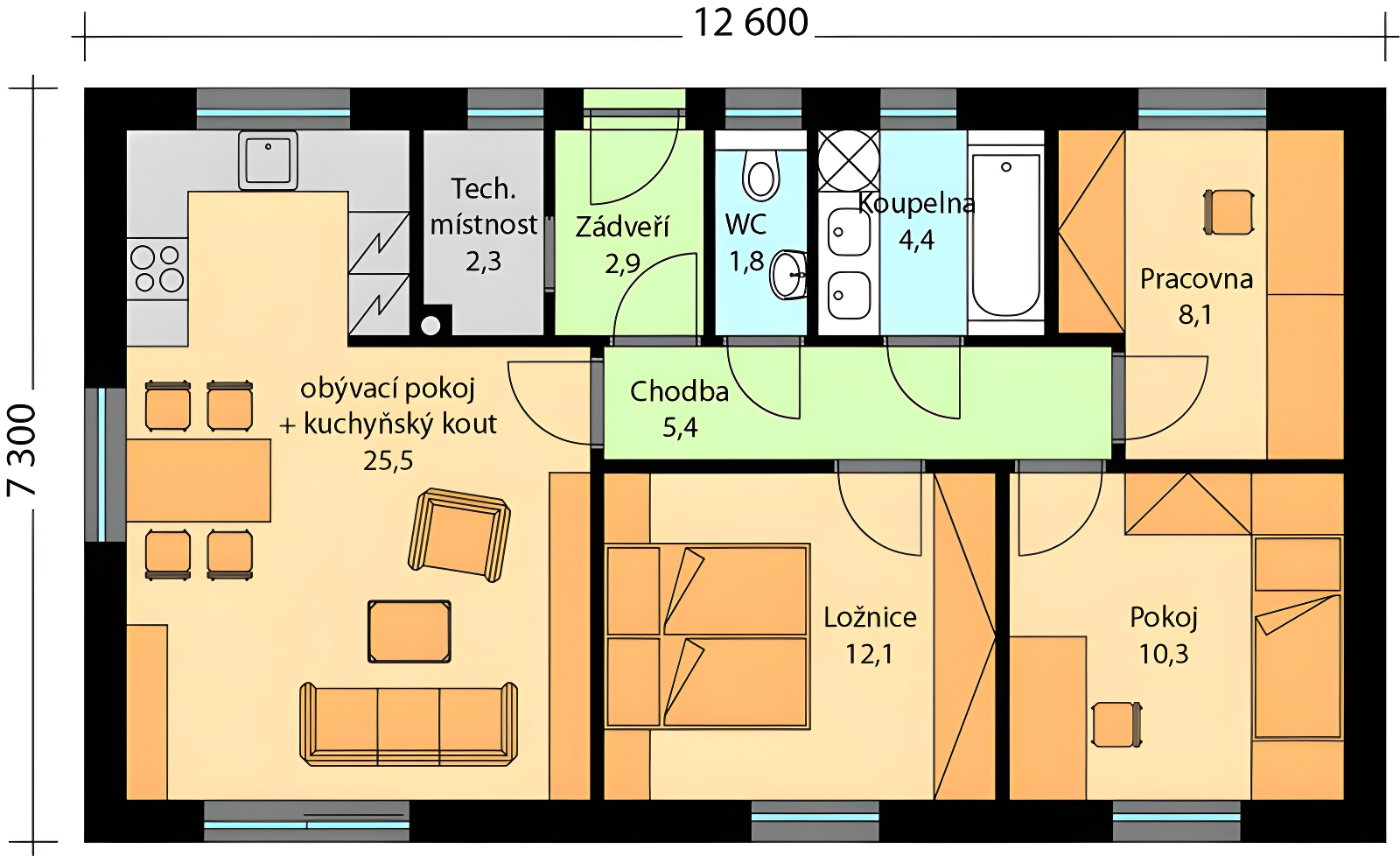K domu lze přistavět garáž, projekt Vám zpracujeme i ve variantě s garáží.
