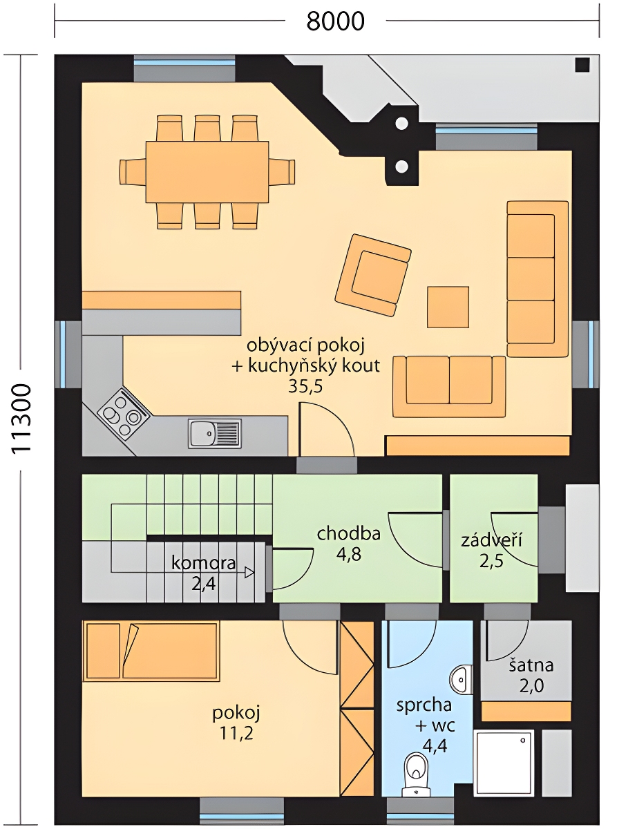 K domu lze přistavět garáž, projekt Vám zpracujeme i ve variantě s garáží.