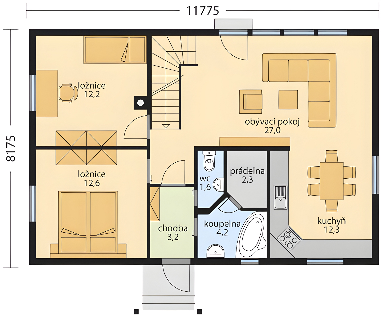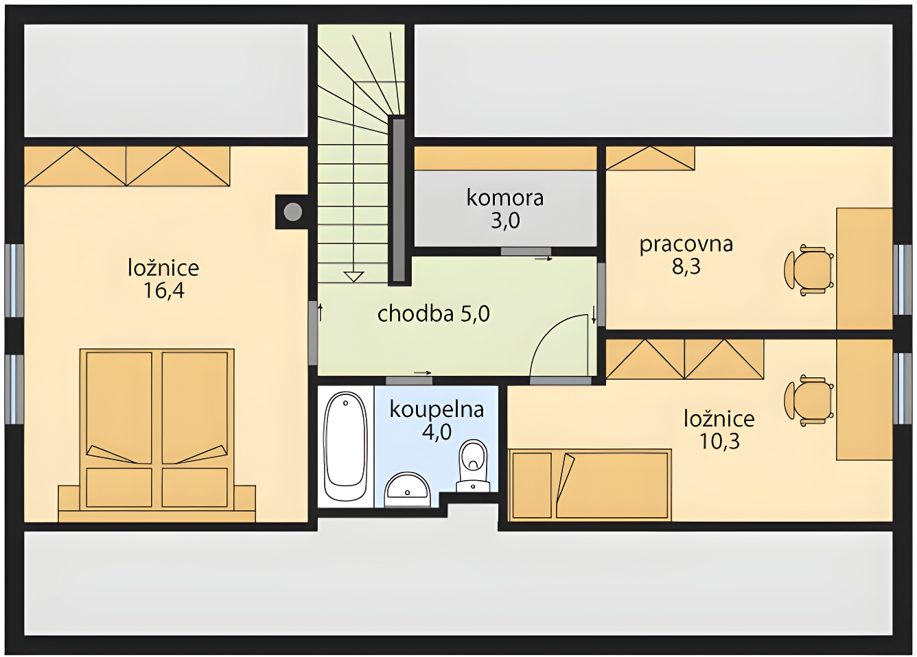 Rodinný dům Sven je klasický dům s obytným podkrovím se sedlovou střechou vhodný do městské i vesnické zástavby.Dispozice je navržena pro 5-6 člennou rodinu. Dům lze stavět i etapově, kdy se v přízemí vybuduje jedna bytová jednotka s obývacím pokojem kuchyní,dvěma ložnicemi, koupelnou a WC a další dvě ložnice s pracovnou, koupelnou a komorou se můžou dobudovat v podkroví. Fasáda je řešena kombinací omítky a obkladových cihliček, je možno ji řešit dle přání investora pouze šlechtěnou omítkou. Dům nabízíme i ve variantě dřevostavba-Rodinný dům Sven-D.