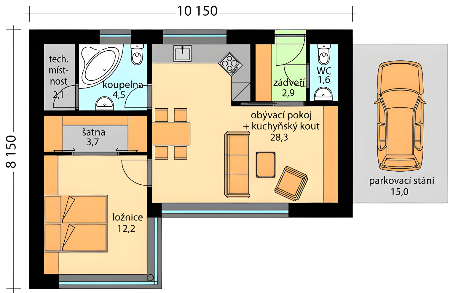 K domu lze přistavět garáž, projekt Vám zpracujeme i ve variantě s garáží.