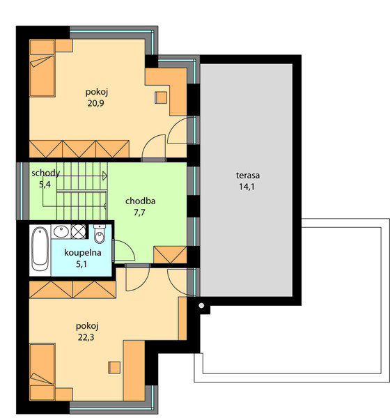 Dvoupodlažní prostorný rodinný dům Aladin moderního vzhledu s pultovou střechou a garáží nabízí pohodlné bydlení jedné rodině. Přízemí domu tvoří obývací pokoj s oddělenou kuchyní s jídelnou. Malý pokoj lze využít jako pracovnu, pokoj pro hosty nebo víceúčelovou místnost, větší pokoj je navržen jako ložnice. Z obývacího pokoje i ložnice je možnost vstupu na zahradu. V 2. NP se nachází dva pokoje a koupelna. Součástí 2.NP je prostorná terasa přístupná z obou pokojů. Dům má moderní vzhled, přesto se hodí do prakticky jakékoliv zástavby.
