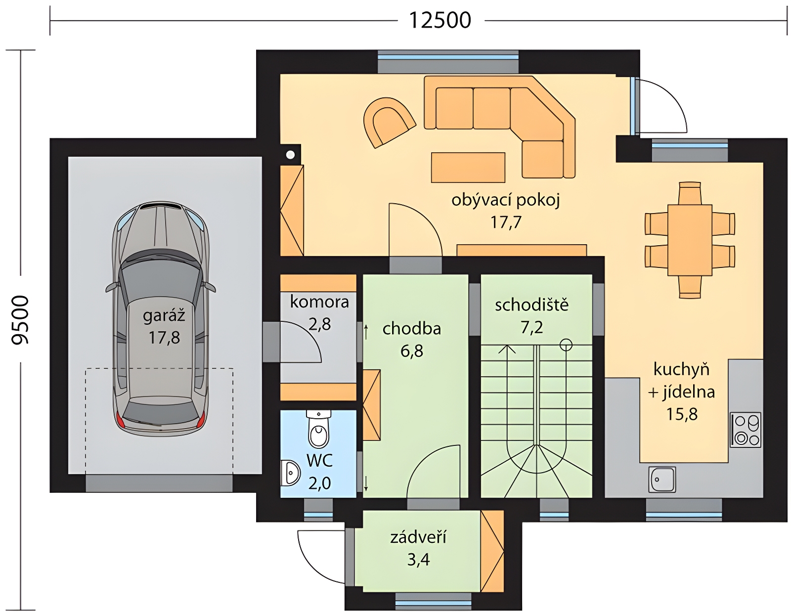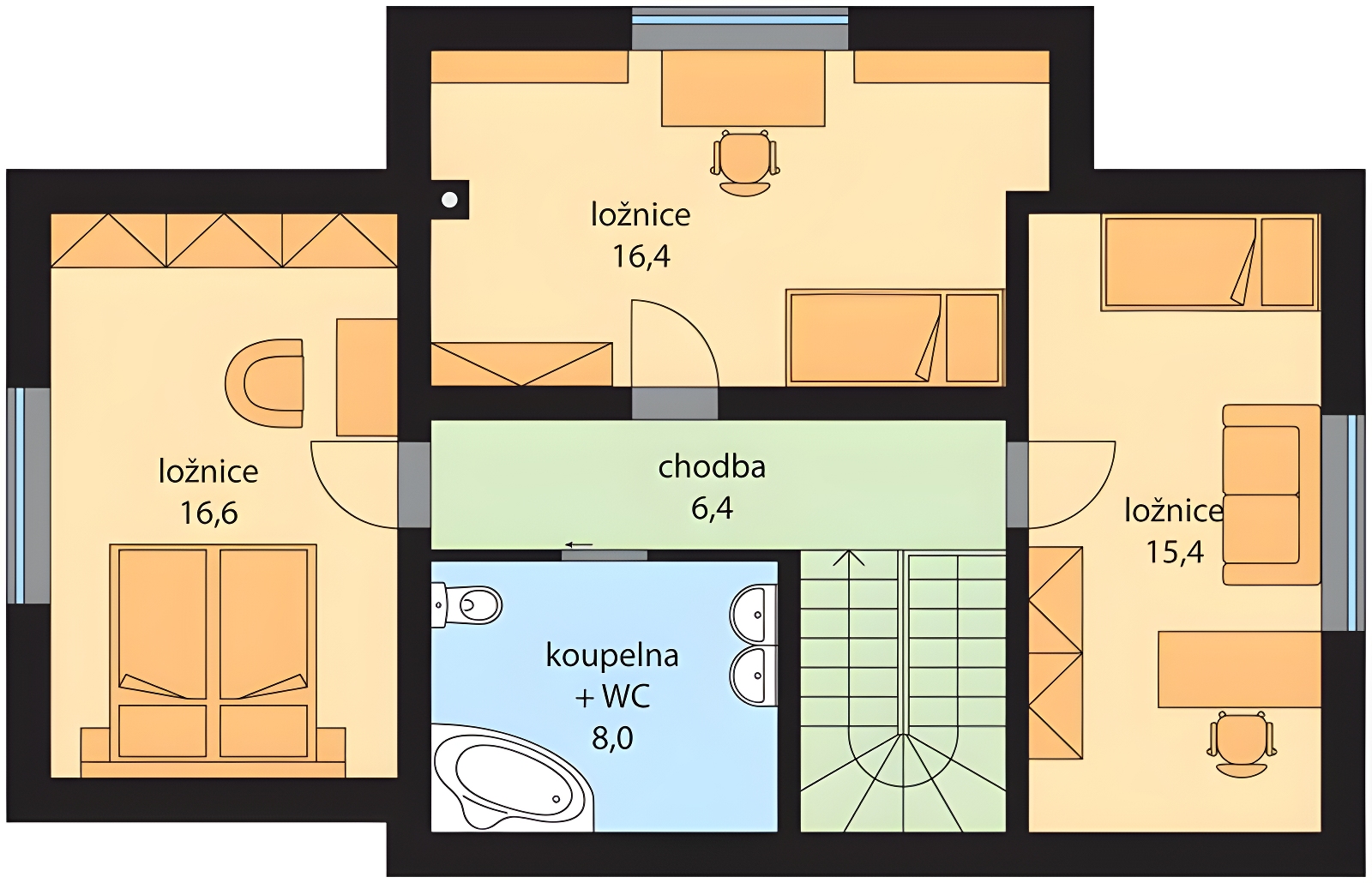 Rodinný dům Anděla je přízemní dům s plně využitým podkrovím a garáží modernějšího vzhledu, určený pro městskou i vesnickou zástavbu. Nabízí bydlení jedné rodině. V přízemí se nachází obytná část obývací pokoj se vstupem na venkovní terasu propojený s kuchyní a jídelnou, v podkroví je klidová část-ložnice rodičů, dvě ložnice dětí a prostorná koupelna s wc. Tepelnou pohodu v obývacím pokoji může zajistit krb, nebo krbová kamna.
