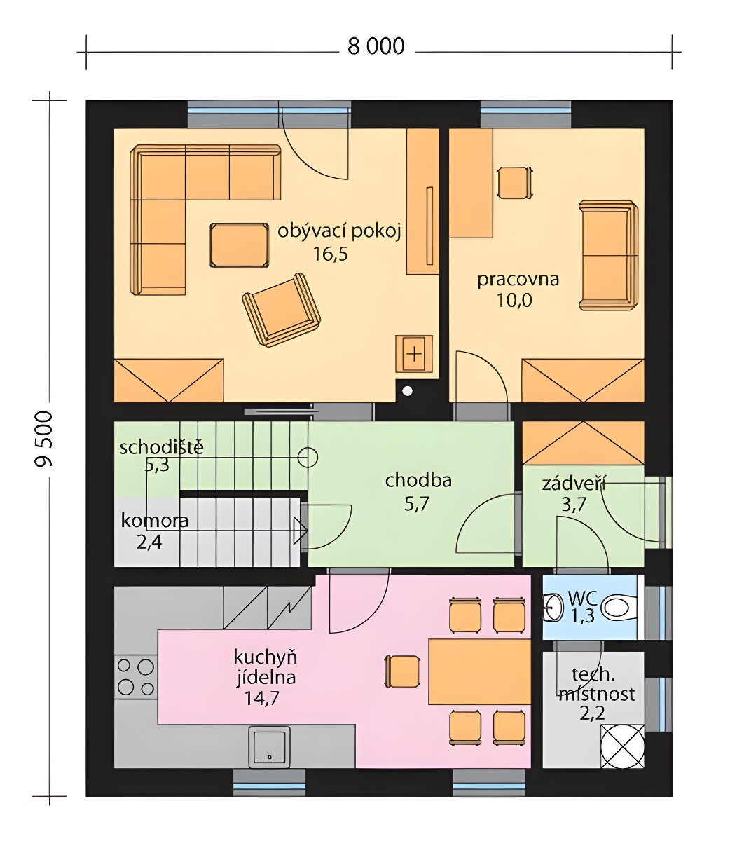 K domu lze přistavět garáž, projekt Vám zpracujeme i ve variantě s garáží.