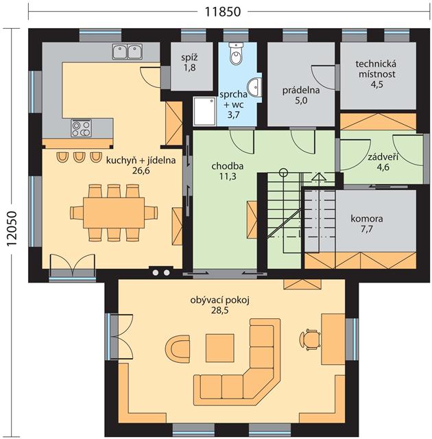 K domu lze přistavět garáž, projekt Vám zpracujeme i ve variantě s garáží.
