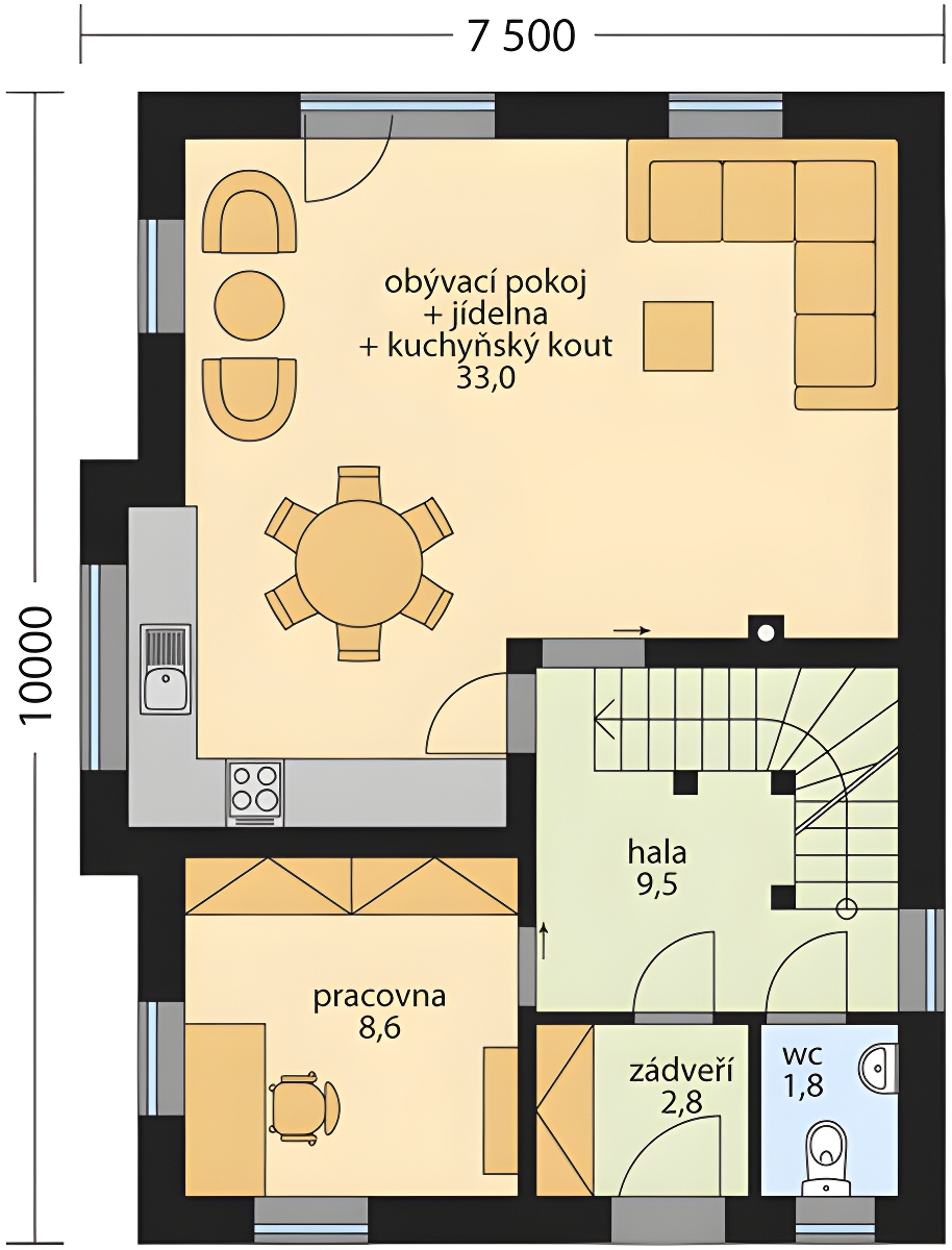 K domu lze přistavět garáž, projekt Vám zpracujeme i ve variantě s garáží.