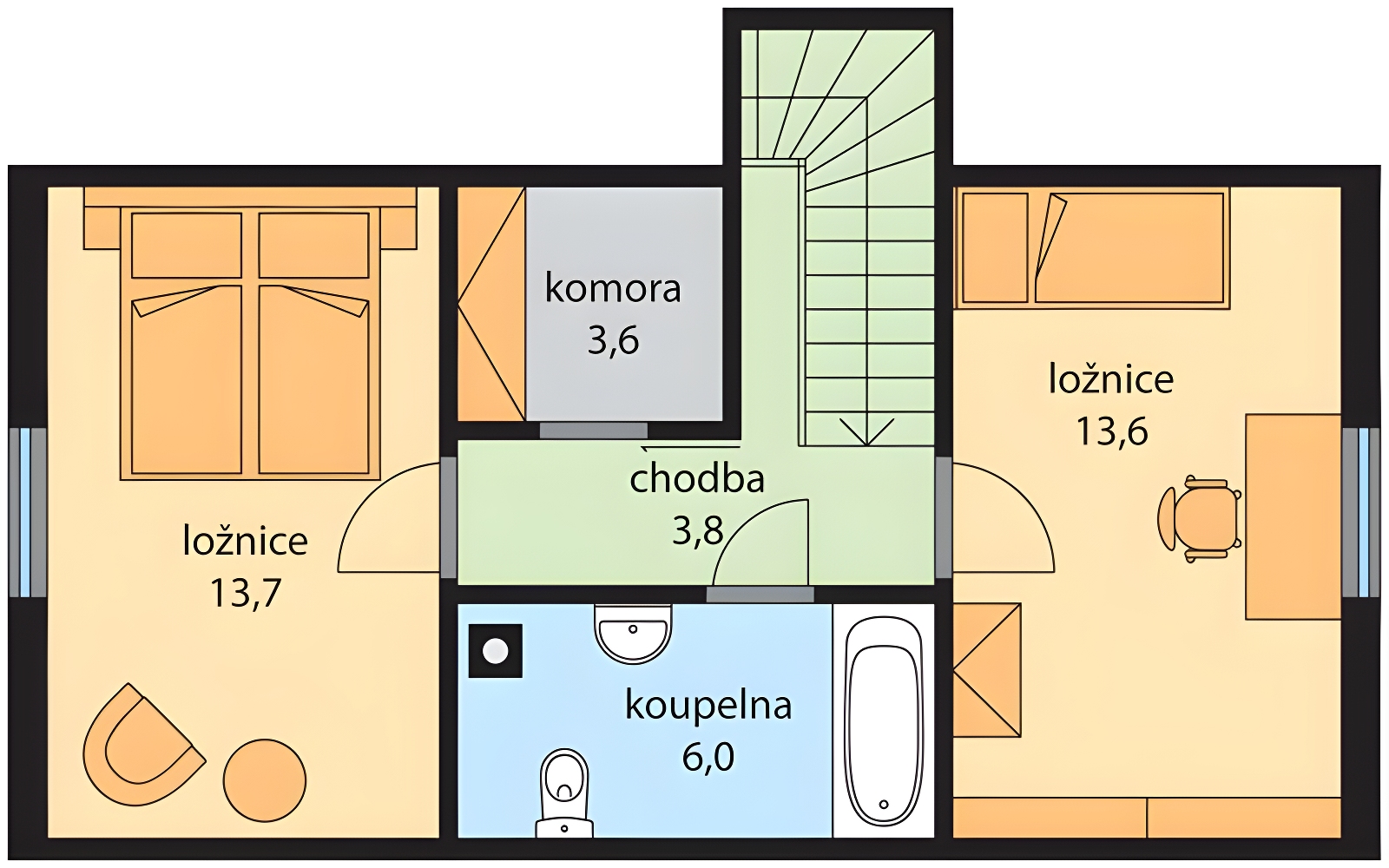 Rodinný dům DAREK je přízemní dům s obytným podkrovím, určený pro vícečlennou rodinu. Počet místností 4+1, kde přízemí se nachází obývací pokoj, kuchyň, ložnice rodičů, koupelna a prostorná komora, kterou lze využít i jako pracovnu, nebo z části šatnu přístupnou z ložnice. V koupelně je sprchový kout, umyvadlo a toaleta. V podkroví jsou dvě ložnice dětí a další koupelna, s vanou umyvadlem a toaletou. Dostatek úložného prostoru poskytuje technická místnost a 2 komory. Z obývacího pokoje je vstup na terasu. Dům nabízíme i v provedení dřevostavba.