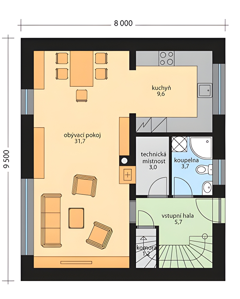 Dvoupodlažní rodinný dům DOROTKA moderního vzhledu s plochou střechou nabízí pohodlné bydlení jedné rodině. Dominantou přízemí je obývací pokoj s krbovými kamny propojený s jídelním koutem. Kuchyň je navržena odděleně. Z obývacího pokoje a jídelního koutu je možnost vstupu na terasu. Technická místnost umožní dovybavit dům technologiemi pro nízkoenergetický a pasivní standard. V 2. NP se nachází ložnice, pokoj, pracovna a koupelna. Malý pokoj - pracovnu lze využít jako pokoj pro hosty nebo víceúčelovou místnost. Dům má moderní vzhled, přesto se hodí do prakticky jakékoliv zástavby