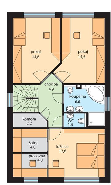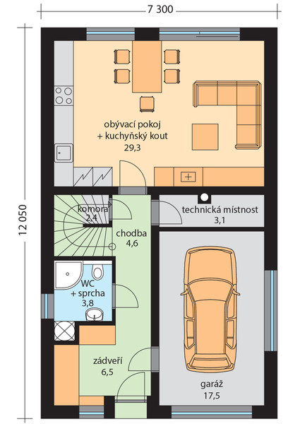Rodinný dům Grácie je moderní dvoupodlažní rodinný dům s garáží, kterého dispozice umožňuje pohodlné bydlení jedné rodiny. Přes zádveří se vstoupí chodbou přímo do obývacího pokoje s kuchyňským koutem. Obývací pokoj je opatřen krbovými kamny. Z chodby je přístupná technická místnost a WC se sprchou a místem pro pračku a sušičku. Francouzská okna v obývacím pokoji umožňují nejen propojení interiéru s exteriérem, ale hlavně dostatečné osvětlení. V 2.NP, které je přístupné schodištěm z chodby, se nachází klidová část domu-ložnice, dva pokoje a koupelna s vanou, 2 umyvadly a toaletou, WC a komora. K ložnici náleží šatna a malá pracovna.