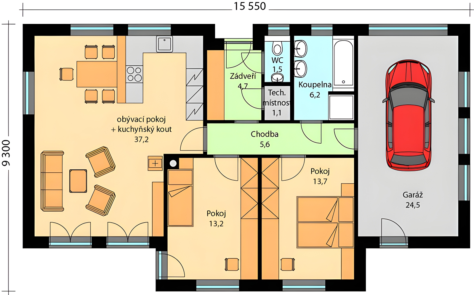 K domu lze přistavět garáž, projekt Vám zpracujeme i ve variantě s garáží.