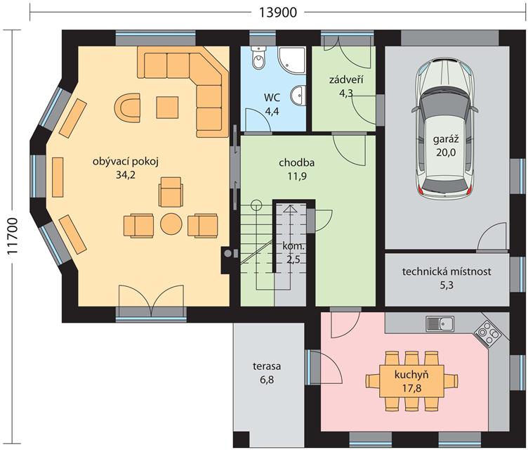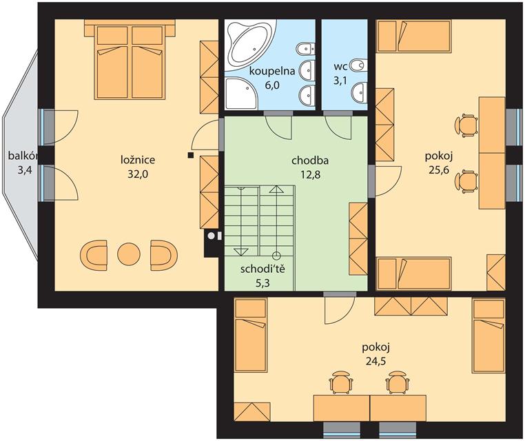 Rodinný dům Joe je moderní zděný dům s obytným podkrovím a garáží, jehož dispozive tvaru L nabízí pohodlné bydlení pro jednu rodinu. Za vstupem se zádveřím je chodba se schodištěm, propojující místnosti v přízemí - obývací pokoj a kuchyň s jídelnou. Z obývacího pokoje i kuchyně je vstup na terasu, která je z části zastřešena. Druhé podlaží je navrženo jako klidová část vybavená třemi pokoji a samostatnou koupelnou. Všechny pokoje v tomto podlaží využívají prosvětlení štítovými okny a jeden pokoj má i menší lichoběžníkový balkon. Fasádu, která je navržena z obkladových pásků, lze upravit pouze z omítky.