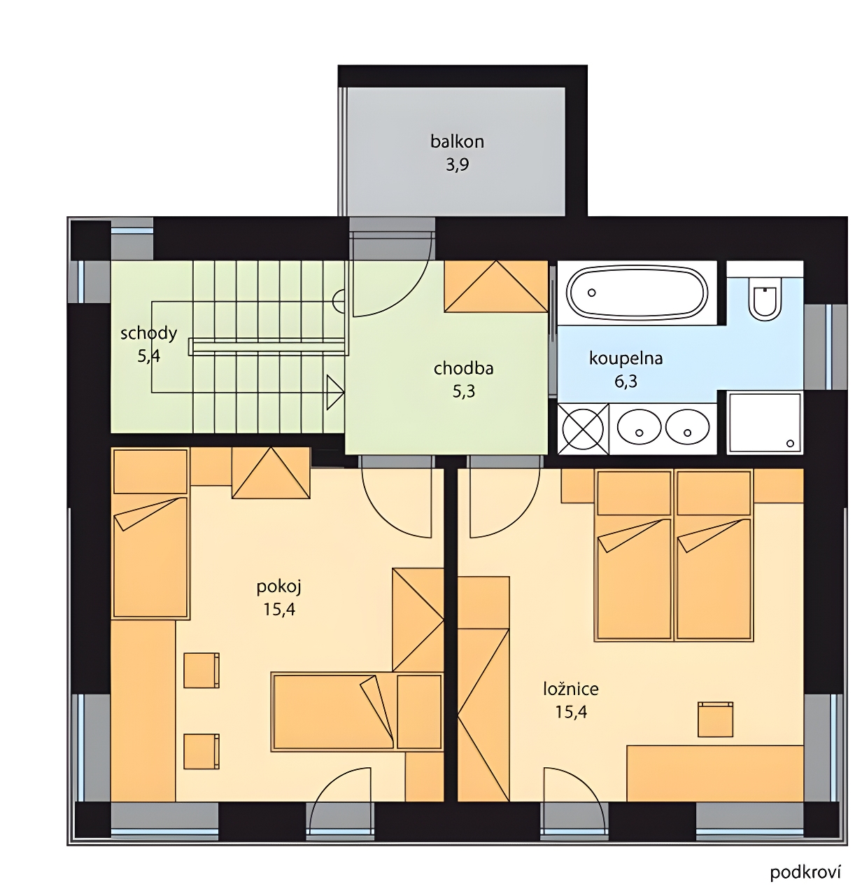 Rodinný dům JUDITA je dvoupodlažní dům moderního vzhledu vhodný do městské zástavby, který na dispozici 3+kk nabízí bydlení jedné rodině. V 1.NP se nachází prostorný obývací pokoj s kuchyňským koutem se spíží a koupelna, v patře je ložnice, pokoj a další koupelna. V druhém podlaží se z chodby vstupuje na balkon. Dostatek úložného prostoru zajišťuje šatna, komora pod schody a i možná spíž navazující na kuchyňský kout. Fasáda objektu je řešena kombinací klasické fasádní omítky a dřevěného obkladu, typy a odstíny jsou realizovány dle výběru investora.