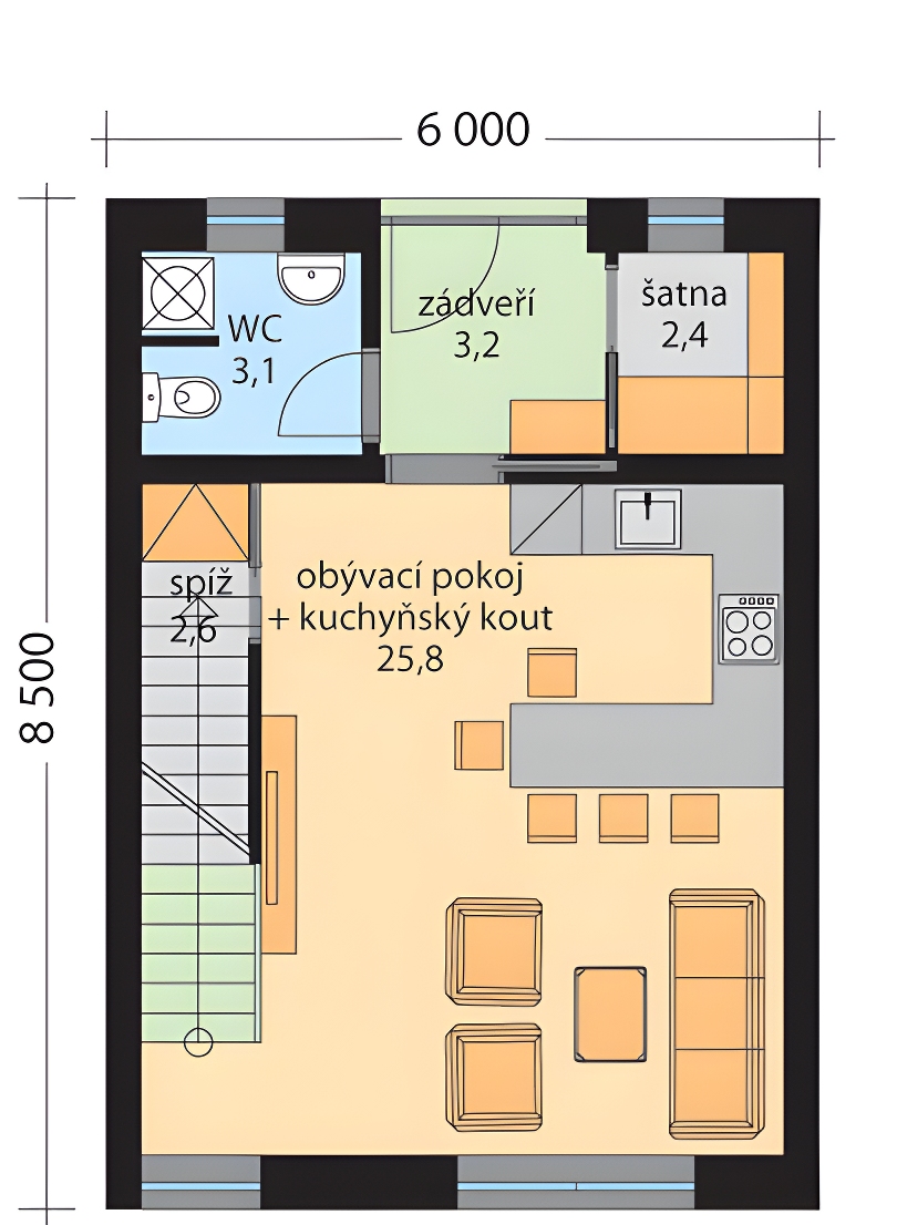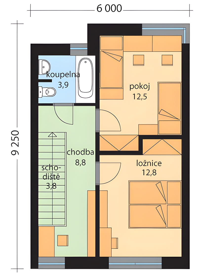 Rodinný dům Lumír je malý řadový dům úsporné dispozice, vhodný pro užívání jedné rodiny. Přes nevelké rozměry dům nabízí prostorný obývací pokoj s kuchyňským koutem v přízemí a pokoj a ložnici v patře. Schodiště, propojující obytnou a klidovou část domu, je součástí obývacího pokoje. Prostor pod schodištěm je využitý jako spíž nebo komora. Chodba v 2.NP je navržena tak, aby se její část dala využít jako pracovna. Z obývacího pokoje se vstupuje na terasu. Zrcadlovým uspořádáním lze dům navrhnout i jako dvojdomek, nebo samostatný dům s garáží.