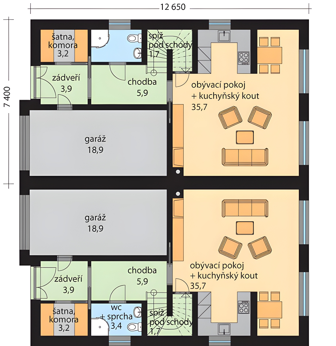 Uvedné ceny a údaje jsou za polovinu dvojdomu - jednu bytovou jednotku, kterou není možno realizovat samostatně.