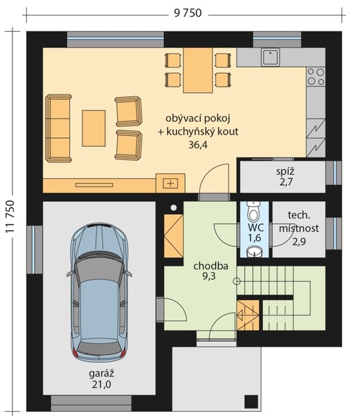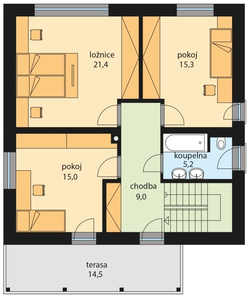 Dvoupodlažní rodinný dům Natan s garáží nabízí pohodlné bydlení jedné rodině. Dominantou přízemí je obývací pokoj s krbovými kamny propojený s jídelním a kuchyňským koutem. Z obývacího pokoje je možnost vstupu na terasu a do zahrady. Technická místnost umožní dovybavit dům technologiemi pro nízkoenergetický a pasivní standard. V 2. NP se nachází ložnice, dva pokoje, pracovna a koupelna. Z chodby a jednoho z pokojů je vstup na terasu v 2.NP. Dům má moderní vzhled, přesto se hodí do prakticky jakékoliv zástavby.