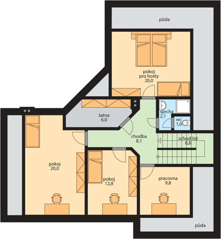 Rodinný dům Petra 3 je podkrovní varianta bungalovu Petra, určená pro vícečlennou rodinu, nebo pro dvě rodiny. Počet místností 7+1. V přízemí se nachází obývací pokoj, kuchyň, ložnice, pokoj a pracovna. Z obývacího pokoje, kuchyně i ložnice je vstup na terasu, která je částečně zastřešena. V podkroví, v kterém lze vytvořit další samostatnou bytovou jednotku jsou tři pokoje a pracovna. Dům je typově vhodný do rovinného i mírně svažitého terénu.
