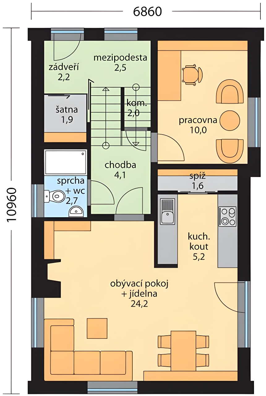 Rodinný dům Šárka moderní dvoupodlažní dům pro jednu rodinu, je vhodný na úzký a svažitější pozemek. V přízemí se nachází obývací pokoj s kuchyňským koutem a pracovna, která může sloužit i jako víceúčelová místnost nebo pokoj pro hosty. V druhém nadzemním podlaží je prostorná ložnice, pokoj se šatnou, koupelna s WC a půda. Z obývacího pokoje i pracovny se vstupuje na terasu. Dům nabízíme i v upravené variantě na rovinatý pozemek a i v pasivním standardu provedení-Šárka-P.