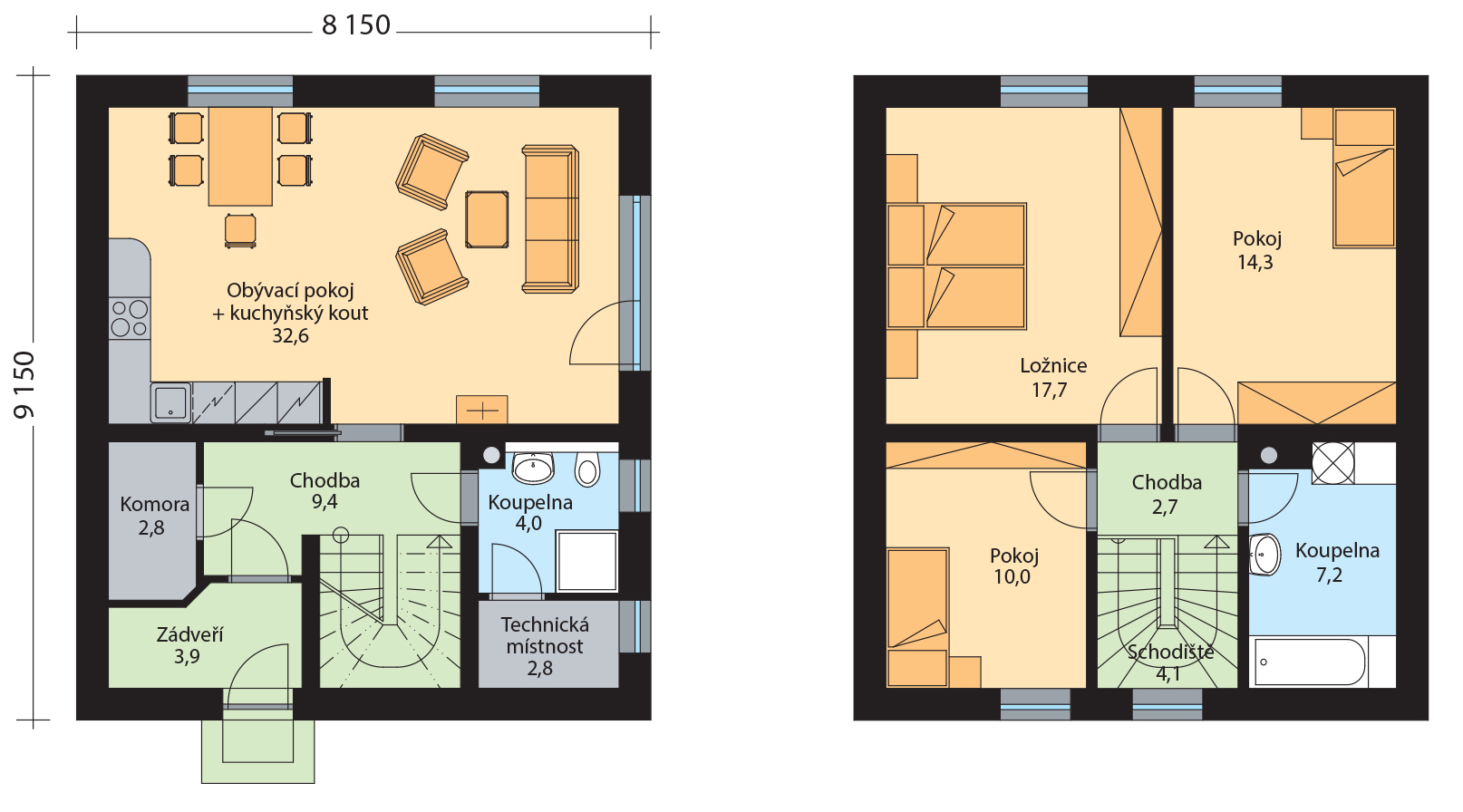 Simeon je klasický rodinný dům s plně využitým podkrovím, určený pro bydlení jedné rodiny. V přízemí se nachází obývací pokoj propojený s jídelnou a kuchyňským koutem, koupelna s wc, sprchovým koutem a umyvadlem, komora a technická místnost. Z obývacího pokoje je přístup na venkovní terasu. V podkroví je ložnice, dva dětské pokoje a koupelna. V koupelně v podkroví je vana, umyvadlo, wc. Dům má komín, tepelnou pohodu nejen v obývacím pokoji dotváří krbová kamna nebo krb.