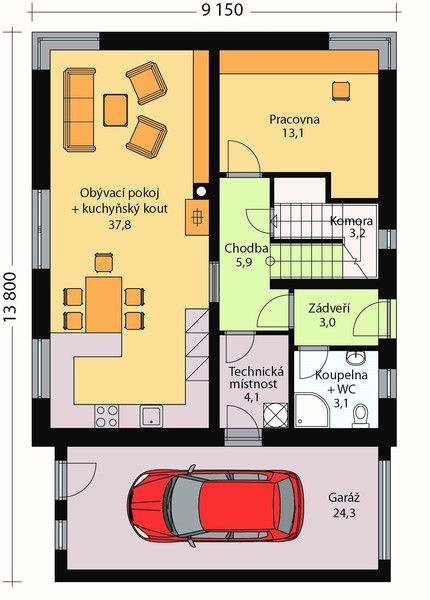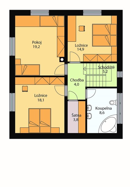 Rodinný dům Táňa je dvoupodlažní dům s přistavěnou garáží, vhodný pro pohodlné bydlení jedné rodiny. Do domu se vstupuje zádveřím do chodby. Ta tvoří hlavní komunikační prostor domu se vstupem do všech místností a schodištěm do 2.NP. V přízemí se kromě technického a hygienického zázemí nachází obývací pokoj s kuchyňským koutem a pracovna, která může sloužit i jako víceúčelová místnost nebo pokoj pro hosty. Z obývacího pokoje se vstupuje na terasu. Technická místnost propojuje dům s garáží. V druhém nadzemním podlaží je ložnice s přilehlou šatnou, dva pokoje, prostorná koupelna. V koupelně v přízemí je toaleta, umyvadlo a sprchový kout, v patře je vana, 2 umyvadla, toaleta. Barevnou kombinaci fasády lze navrhnout dle požadavku investora.