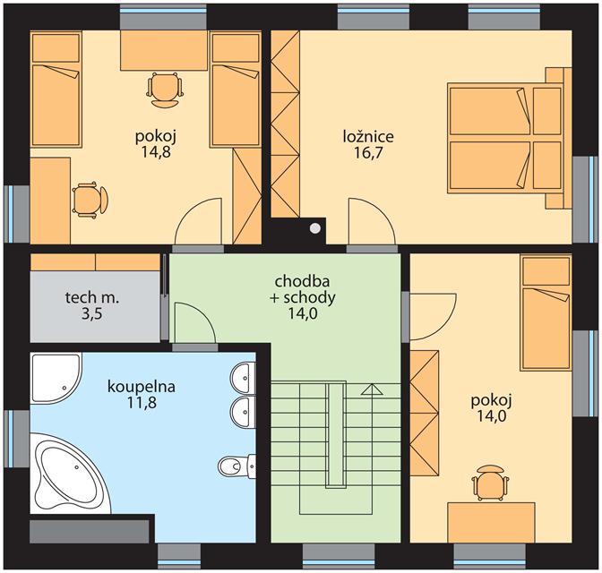 Rodinný dům Tony je moderní zděný dvoupodlažní dům zastřešený valbovou střechou se sklonem 25°, jehož dispozice obdélnikového půdorysu zajistí v pěti pokojích pohodlné bydlení vícečlenné rodině. V přízemí se nachází obývací pokoj, kuchyňský kout se spíží a pracovna, která může sloužit jako ložnice nebo pokoj pro hosty. Z obývacího pokoje se vstupuje na terasu. V druhém nadzemním podlaží jsou dva pokoje, ložnice, koupelna a technická místnost.