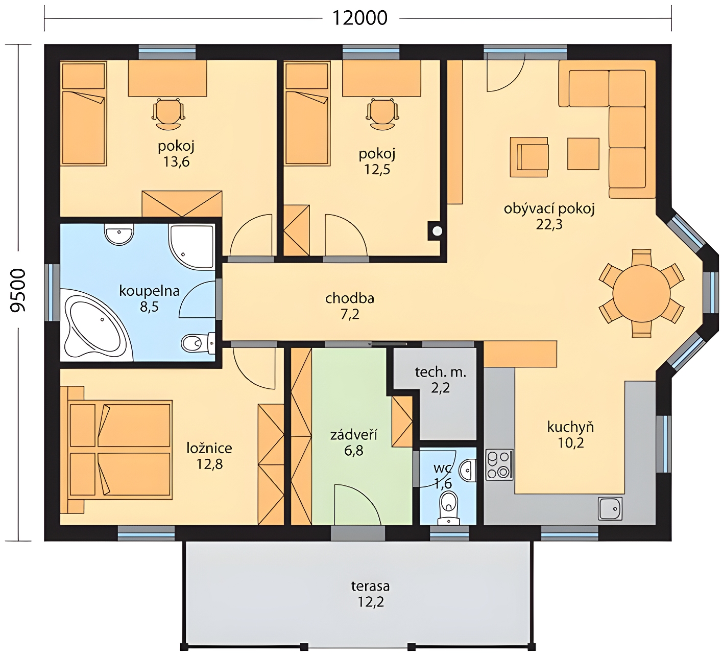 Rodinný dům Vráťa je přízemní dům klasické dispozice s krytým vstupem-terasou, určený pro jednu rodinu. Počet místností 4+kk (obývací pokoj propojený s jídelním a kuchyňským koutem, ložnice a dva pokoje). Z obývacího pokoje je přístup do zahrady. Typově je dům vhodný do rovinného i svažitého terénu. Projekt je nabízen i v nízkoenergetickém standardu provedení a i ve variantě dřevostavba (viz. dům VRÁŤA - D.)